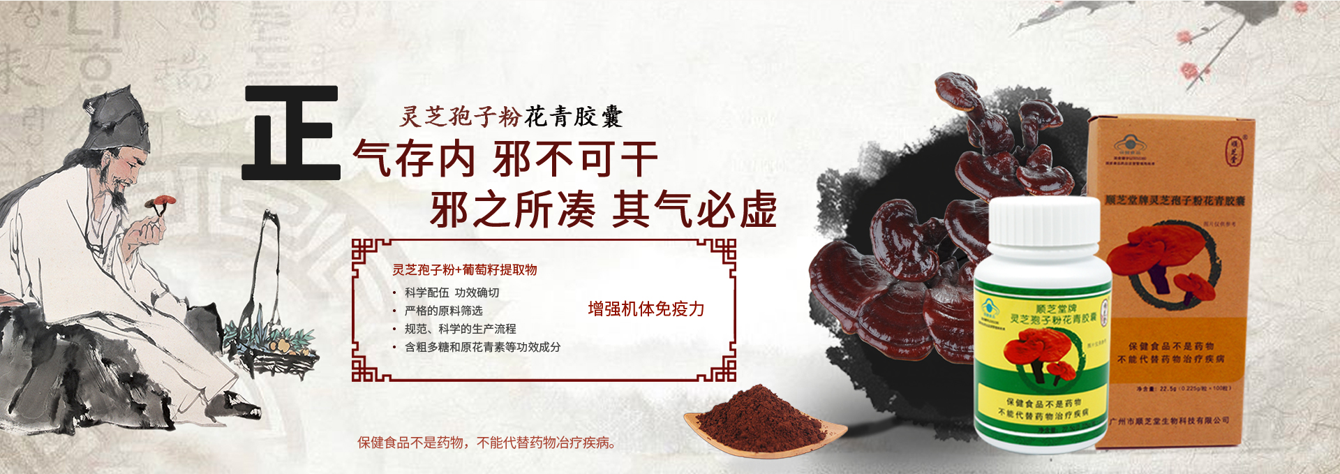 廣州市順芝堂生物科技有限公司成立于2003年,是經(jīng)國家工商局批準(zhǔn),以弘揚(yáng)中醫(yī)藥養(yǎng)生文化,從事生命健康產(chǎn)業(yè),集科研開發(fā)、健康咨詢、生產(chǎn)銷售于一體的科技企業(yè)。 公司以大力弘揚(yáng)中醫(yī)藥養(yǎng)生文化,實(shí)現(xiàn)“健康青春順芝堂”的目標(biāo)為企業(yè)宗旨;堅(jiān)持“以人為本,追求卓越、臻于至善”的企業(yè)精神;探索實(shí)踐產(chǎn)品與技術(shù)相結(jié)合的順芝堂特色的養(yǎng)生之路。遵循“讓消費(fèi)者獲得健康、讓經(jīng)營者獲得利益、讓企業(yè)得到發(fā)展”三個(gè)有利的經(jīng)營原則,堅(jiān)持以“科技是第一生產(chǎn)力”理論為指導(dǎo),不斷研發(fā)出適應(yīng)市場需求的的高科技、高品質(zhì)、高功效的系列產(chǎn)品;